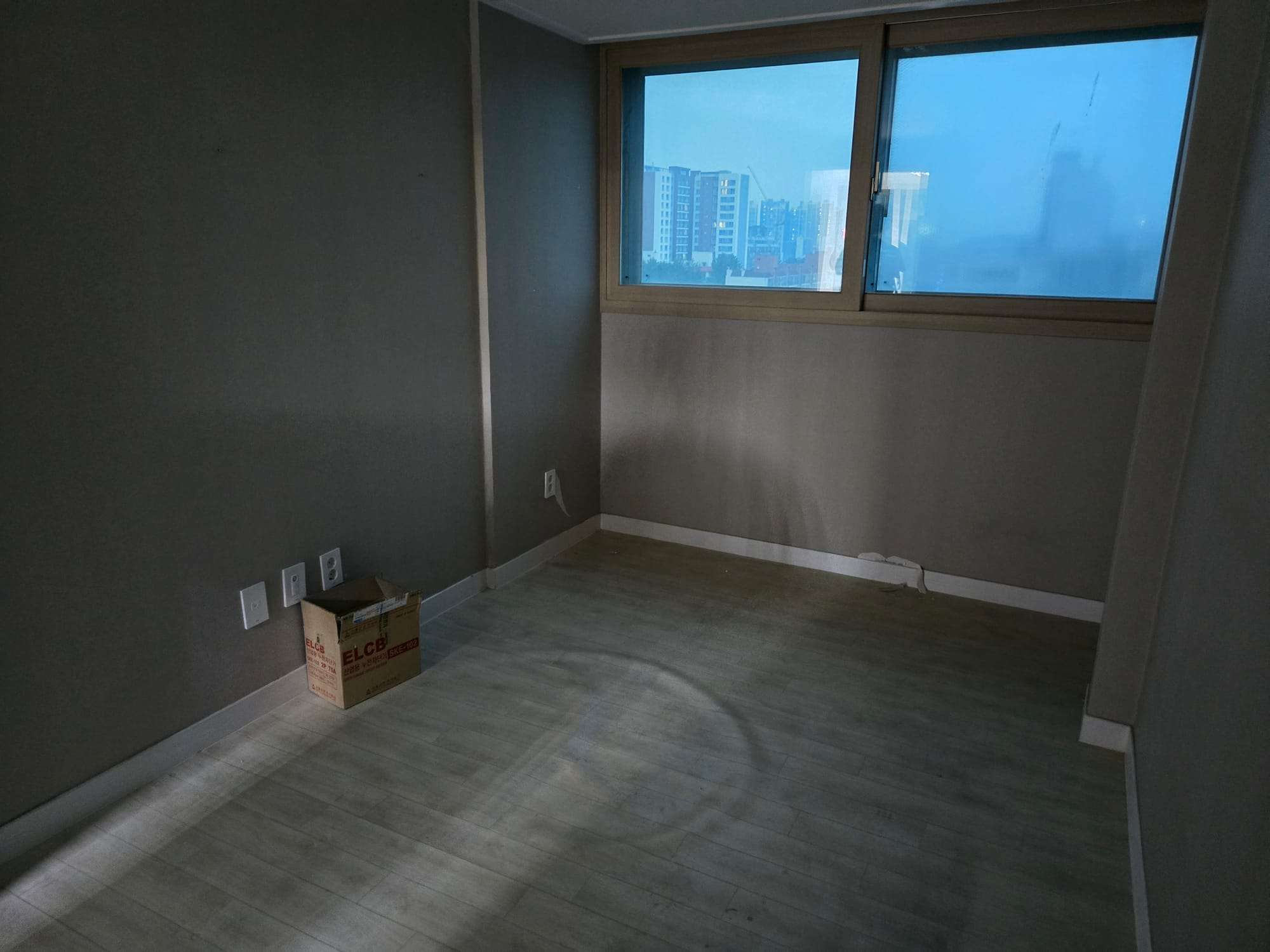 걸레받이는 기존처럼 높이지 않고 4cm로 낮게 요청드렸고, (사진으론 알기 힘들지만)마루 색과 맞게 조색실리콘으로 마무리 했다.