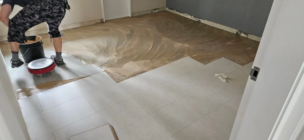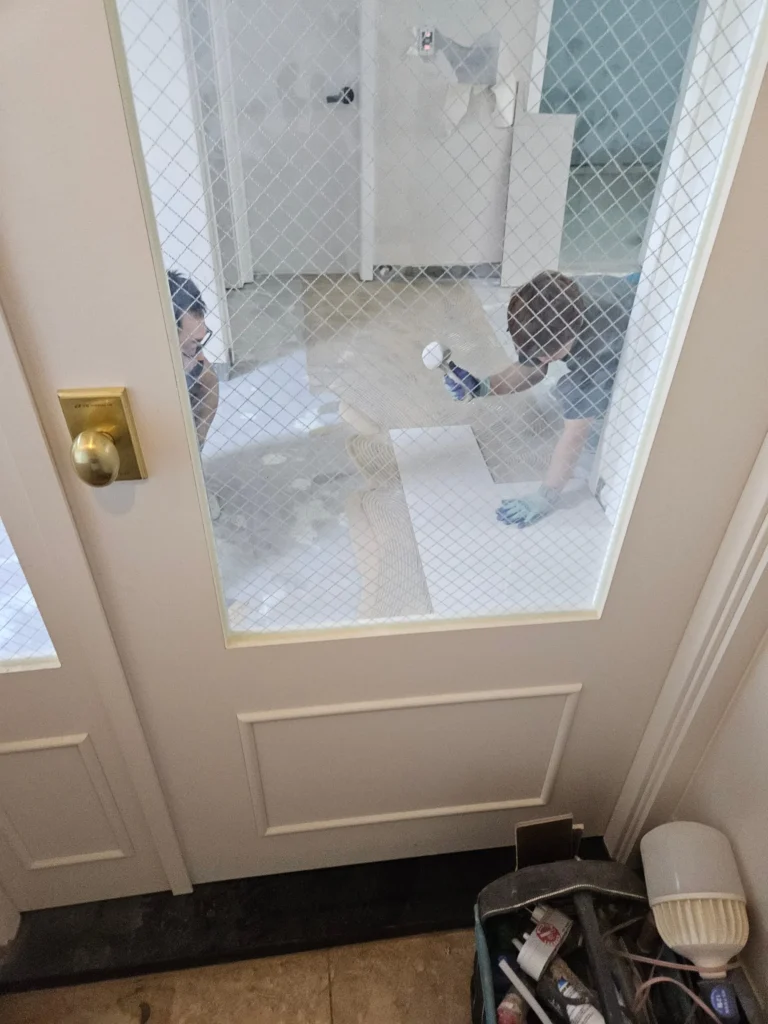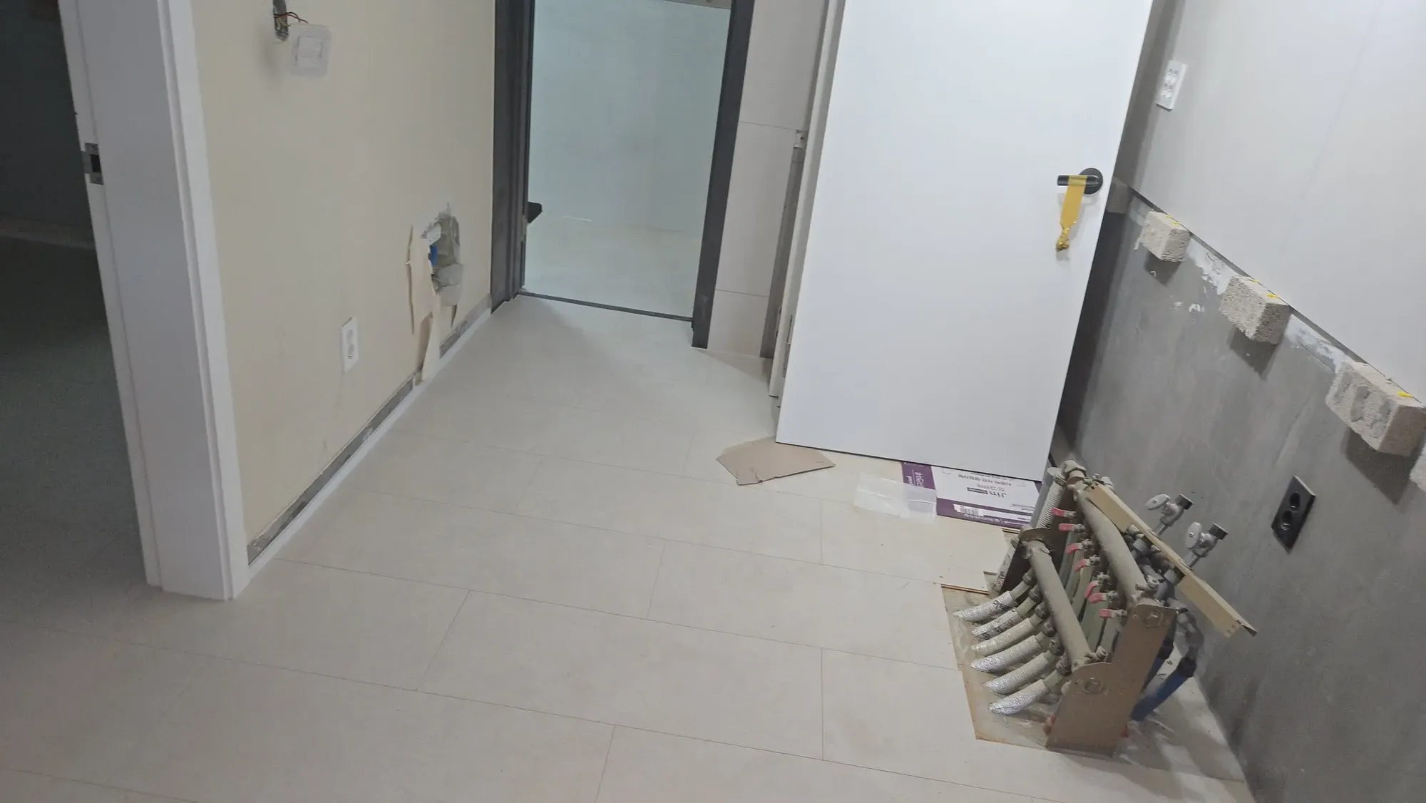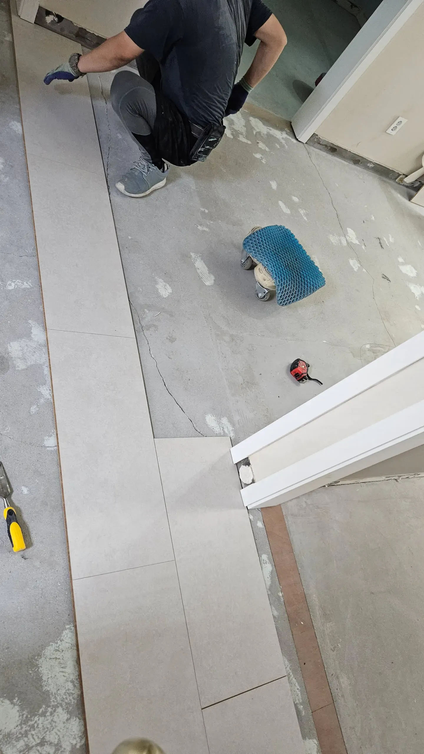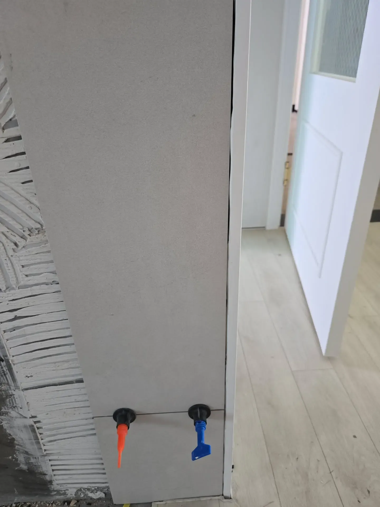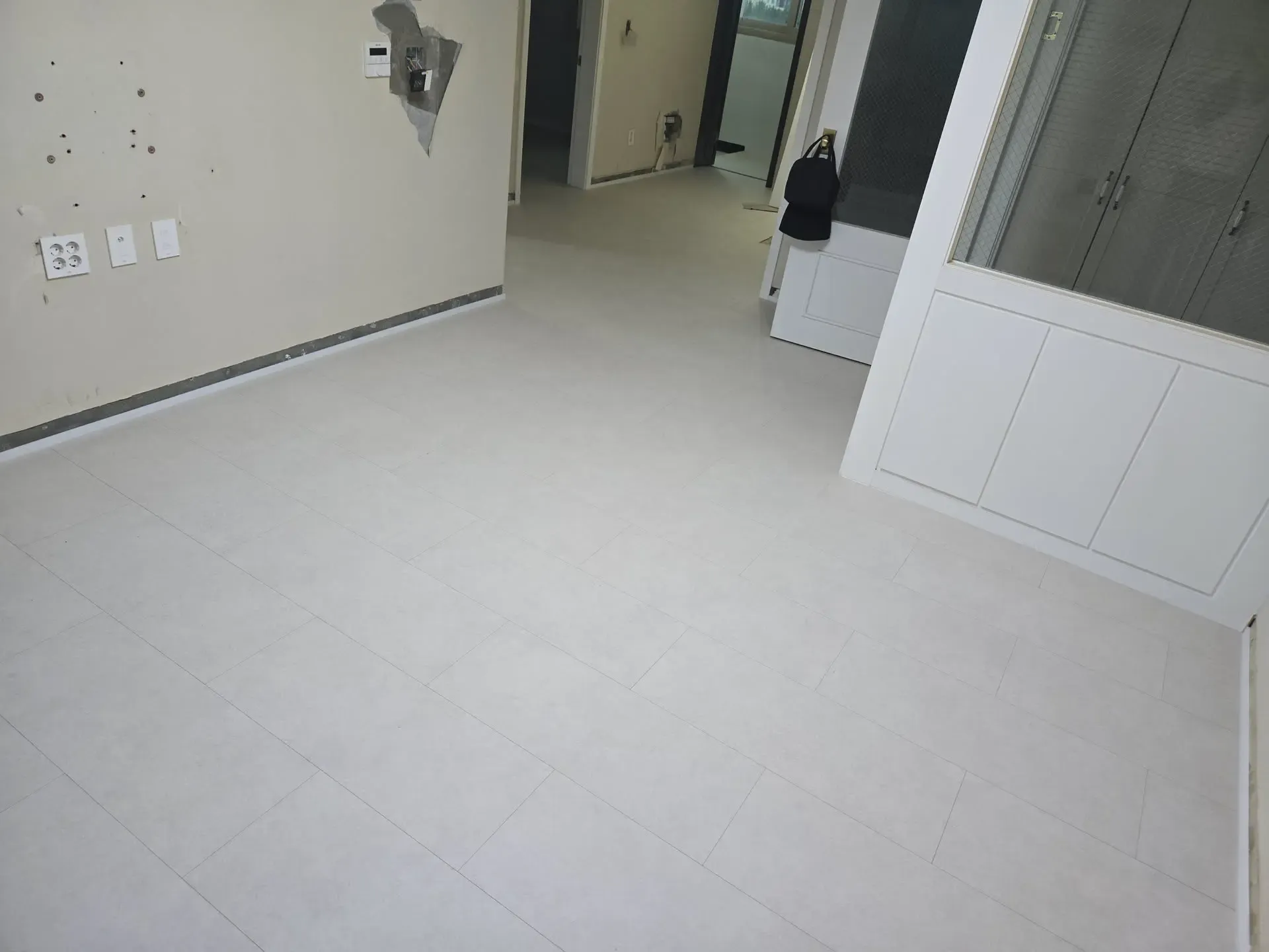 인테리어를 처음 해보는 우리는 그런가보다~ 하고 갔는데, 알고보니 이런 얕은 메지는 금방 마르고 금방 깨지기 때문에, 메지 슥슥 밀어넣고 바로 깨지면 그 위에 다시 덮어서 마무리하는게 정석이라고 한다. 우린 또 호구당했다 ㅎㅎㅎ.