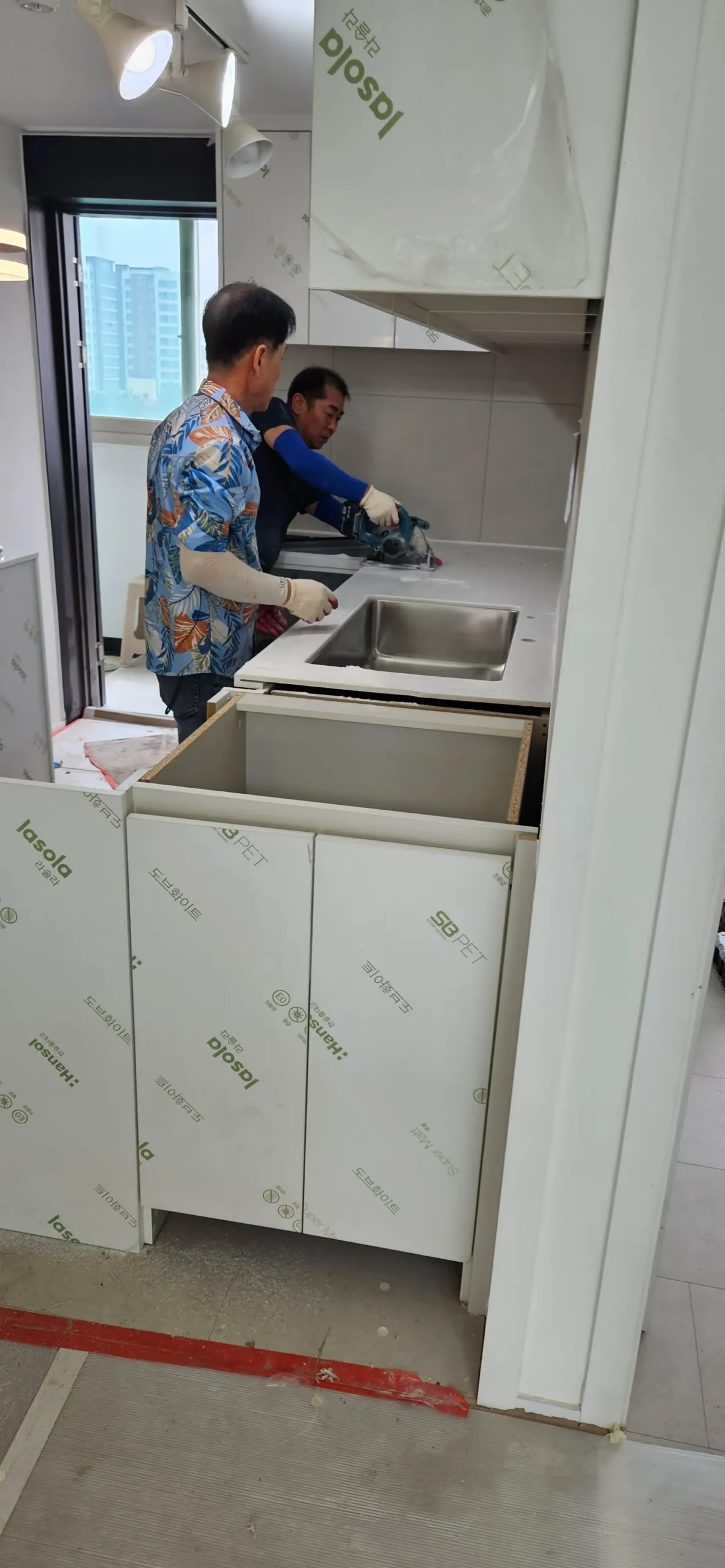 그래서 셀프로 진행하는 건이고 싱크대 철거와 마루 시공 날짜가 꽤 차이가 있으며, 해당 작업은 소음이 크게 발생하지 않음을 직접 설명하느라 진땀을 빼야 했다.