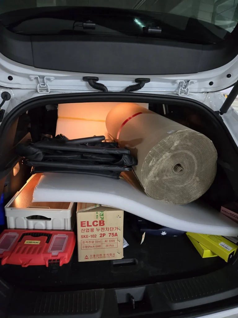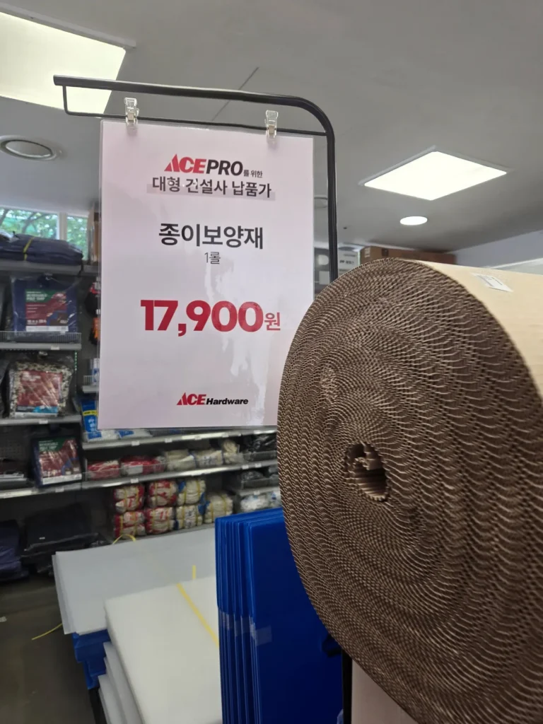 이 작업 역시 엘리베이터 보양처럼 업체를 이용할 수도 있었으나, 찌의 강력한 주장 덕에 에이스하드웨어에서 폴리베니아와 골판지롤을 구매해서 우리가 직접 하기로 했다.