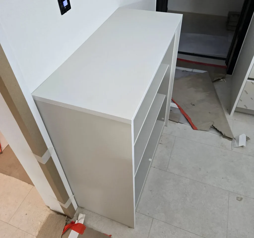나도 바보는 아니라서 이렇게 조립하기 전, 애초에 가구를 가배치할 때 이걸 발견했고, 그 즉시 작업자에게 이를 물었으나 ‘LOT가 다르면 이럴 수 있다’는 대답을 들었다.