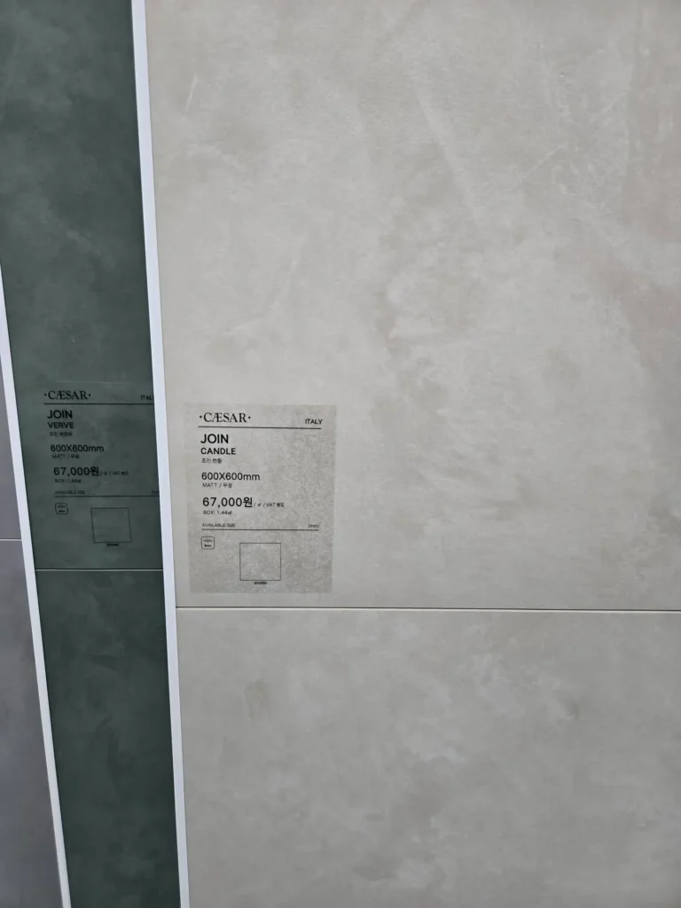정말 많은 타일을 한 곳에서 편하게 볼 수 있어서 좋았다… 근데 이제 좋긴 좋았는데 ‘이거다!’ 싶은 타일들은 생각보다 가격이 많이 나갔다. 예를 들면 아래같이 자연스러운 디자인에 맘에 드는 색을 찾을 수 있었는데…