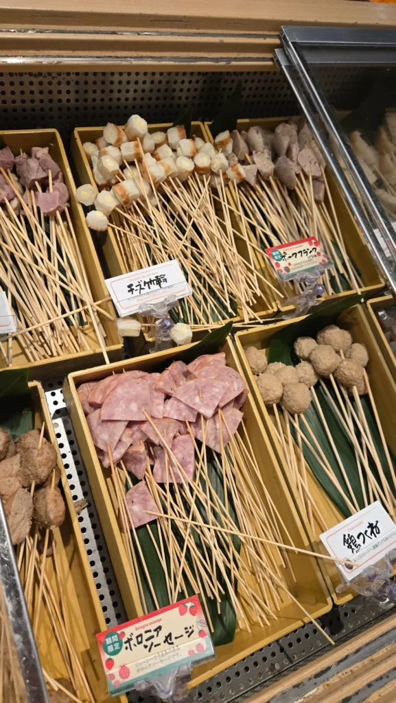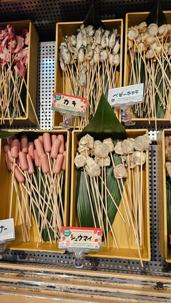 그 외 새우, 돼지고기, 소고기, 타꼬야끼(를 튀겨먹나..?), 치킨 너겟, 햄, 함박스테이크, 오리 가슴살, 치킨 미트볼(헐), 가리비, 치즈어묵, 굴, 소세지, 만두, 아라비키 포크 프랭크(향신료로 양념한 소시지), 곤약(헐2), 츄러스, 튀긴 빵(..?) 등이 있었다.