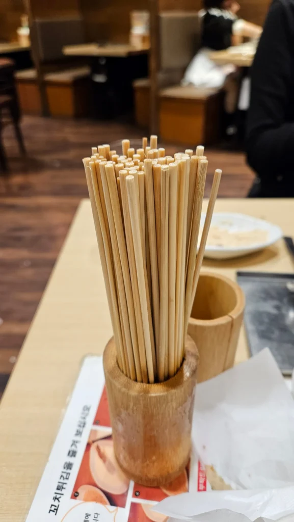 자리에는 한국어로 된 안내문이 있었으며, 재료별로 몇 분이나 튀겨야 하는지 적혀있었는데, 실제로 해보면 이대로 신경쓰긴 어려웠다. 탈나기 쉬운 재료들은 충분히 시간을 들이고, 그렇지 않은 건 잘 튀겨졌다 싶으면 꺼내면 되었다(덜 튀겨도 된단 뜻 아님).