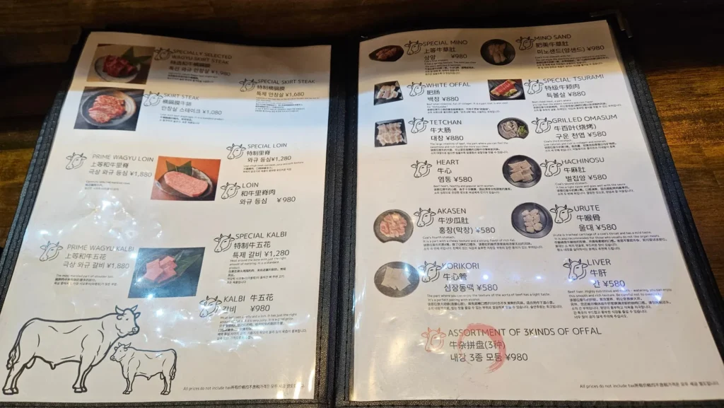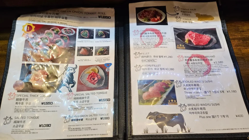 야키니쿠엔 닝구를 검색하면 파우설이 나오니까 이 메뉴는 알았는데 ‘와규 사토브리앙’이 뭔지, 고기 3종 모듬의 ‘보통’과 ‘특제’의 차이가 얼마나 나는지 등등.. 솔직히 아무것도 알 수가 없었다.
