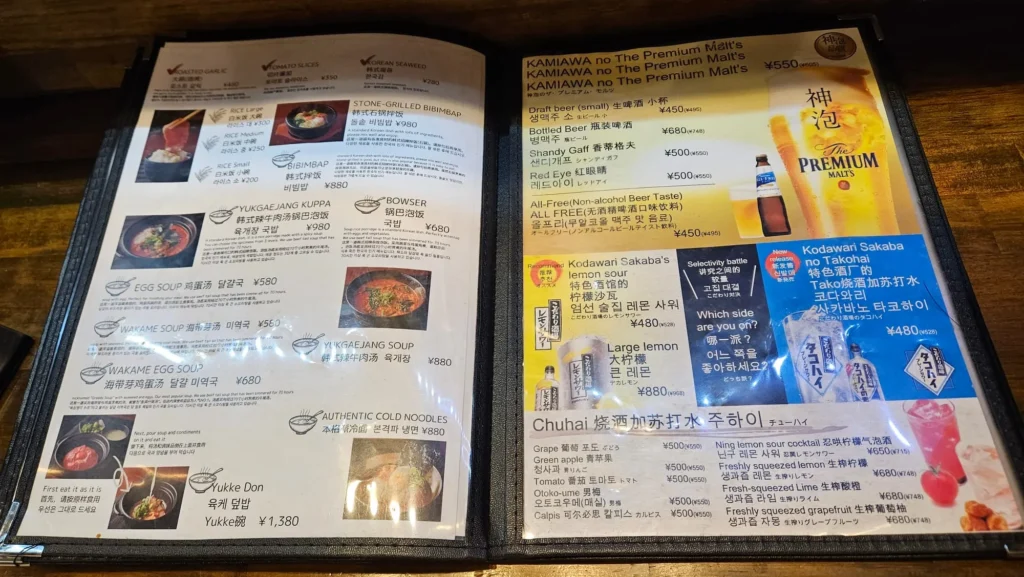 메뉴판은 기본적으로 순수100% 일본어로 되어있다. 일본인데 당연히 메뉴도 일본어로 적혀있는게 정상인데, 예상치 못한 일본어의 공격에 조금 당황스러웠다 ㅋㅋㅋ..