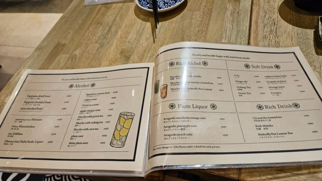 심지어 자릿세도 있었다. 1인당 330엔.. 우린 2인이었으니까 자리에 앉은 것만으로 660엔을 뜯겼다 ㅜ
