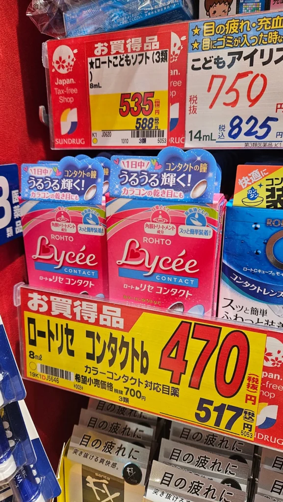 한국에서 약국 가서 살 수 있는 안약 중 Rohto사에서 제조한 안약들이 몇 가지 있는데, 여긴 현지라서 그런지 동일제품을 국내가의 반값에 살 수 있었다.