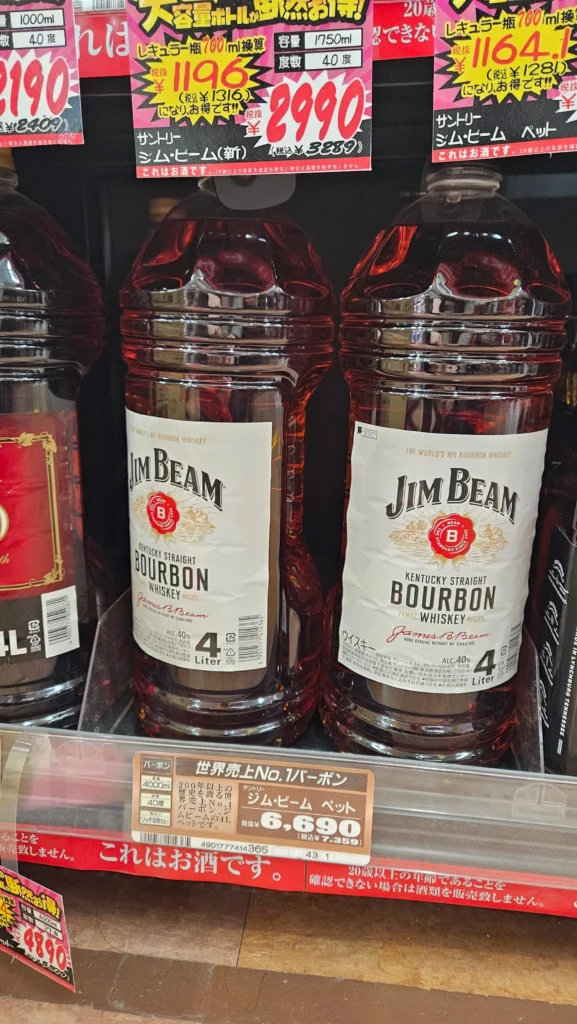 2.7리터의 산토리 위스키(..)와 4리터의 짐빔(…….)도 가격이 엄청나게 저렴했다.