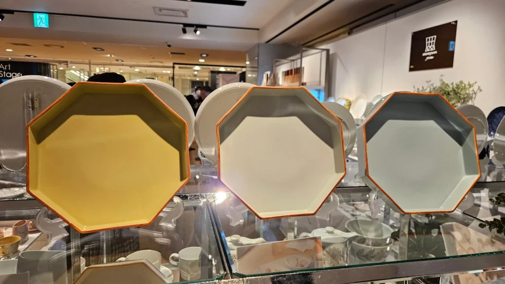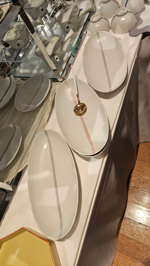 가방을 샀으면 매장 브랜드로고 앞에서 사진을 하나 찍었어야 하는데 그건 까먹어버리고, 구경갔던 최고층에서 접시들이 예뻐 이 사진들을 조금 찍어왔다.