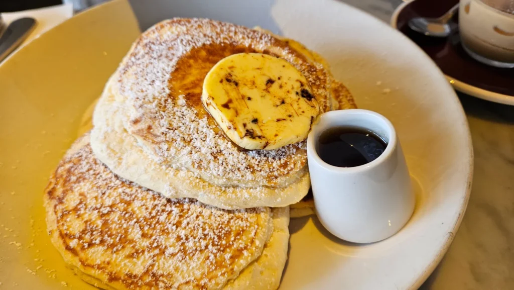 이 곳의 팬케이크 메뉴 이름은 ricotta hotcakes, banana and honeycomb butter로 이 단일 메뉴만 32달러였다. 결코 저렴하진 않다.