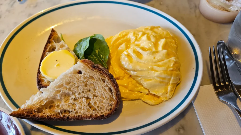 나는 스크램블 에그가 곁들여진 발효빵(scrambled eggs and toasted iggy’s sourdough)를 주문했다. 당시엔 처음 보는거니까 먹어봐야지 싶은 마음으로 주문한건데, 블로그 쓰면서 검색해보니 Iggy’s sourdough는 유명한 천연발효빵을 만드는 브랜드의 빵이라고 한다.
