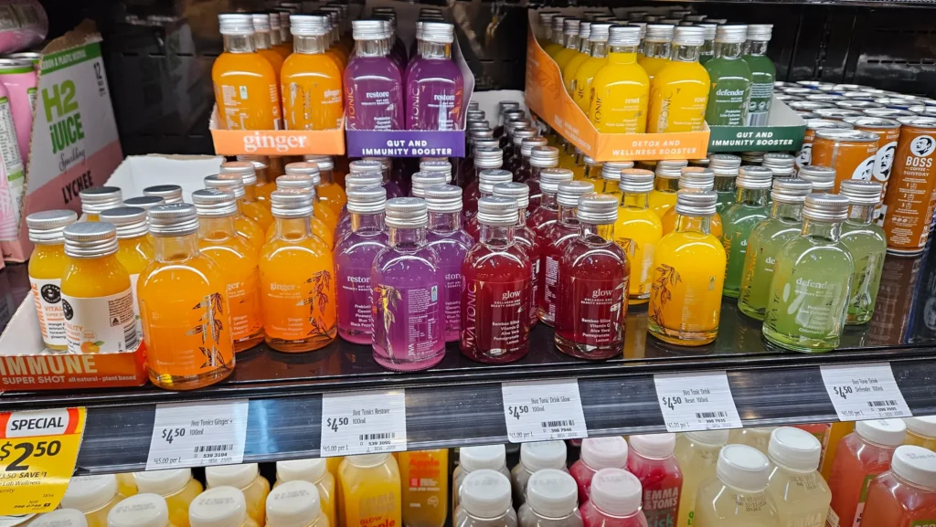 이번 방문엔 음료수가 눈에 확 띄었다. 착즙 주스와 디톡스 음료같은 웰빙류 음료가 주로 진열된 곳이었다.