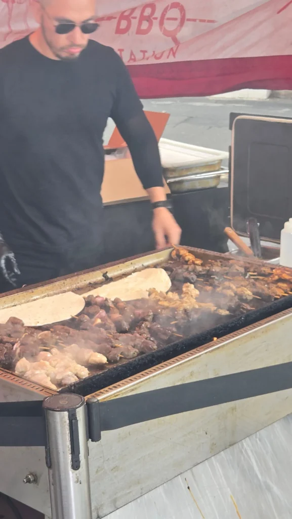 우린 설레는 아기들처럼 피자를 받아들고 후다닥 노상 테이블에 앉아서 ‘앗 뜨거 앗 뜨거’ 하면서 피자를 빠르게 해치웠다먹었다.