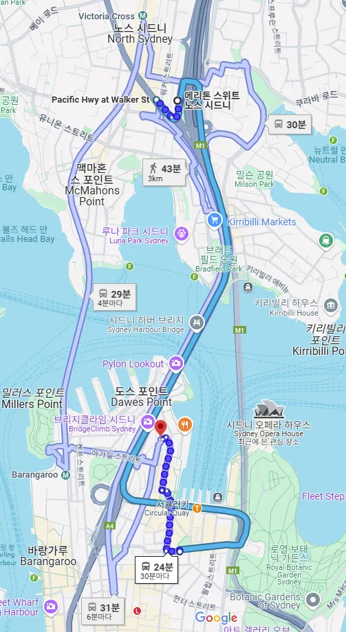 11월 여행을 2월에 작성하고 있어 정확히 기억이 나지 않지만 =ㅅ=… 대충 아래같은 루트였기 때문에, 도보로 살짝 이동해야 했다.